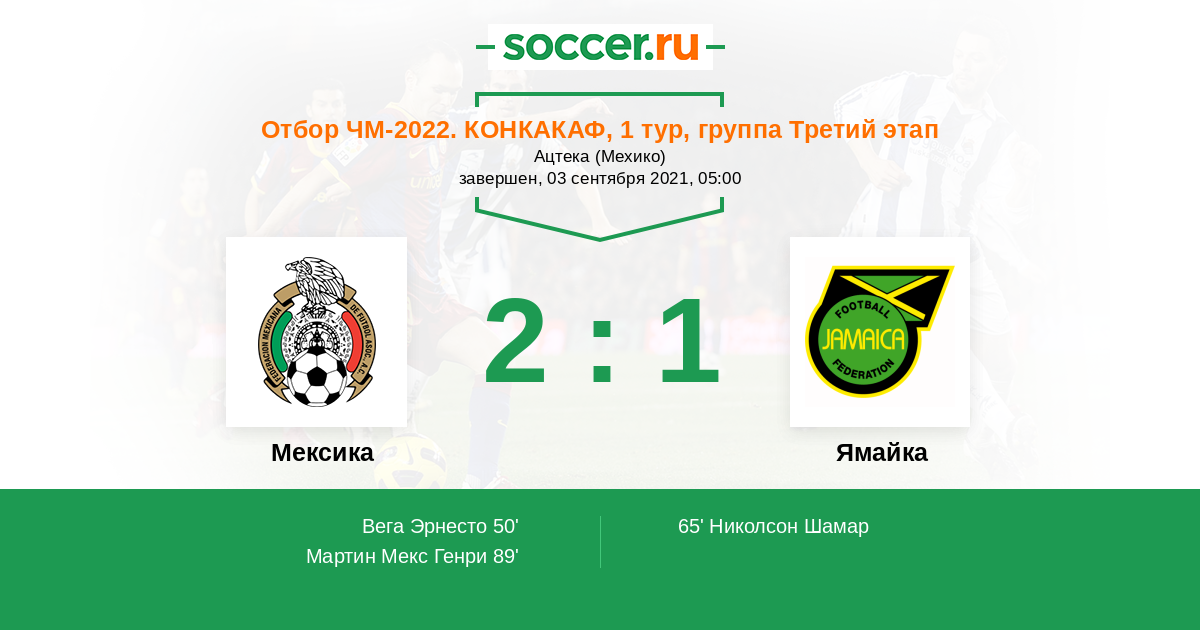 Протокол матча Мексика против Ямайка