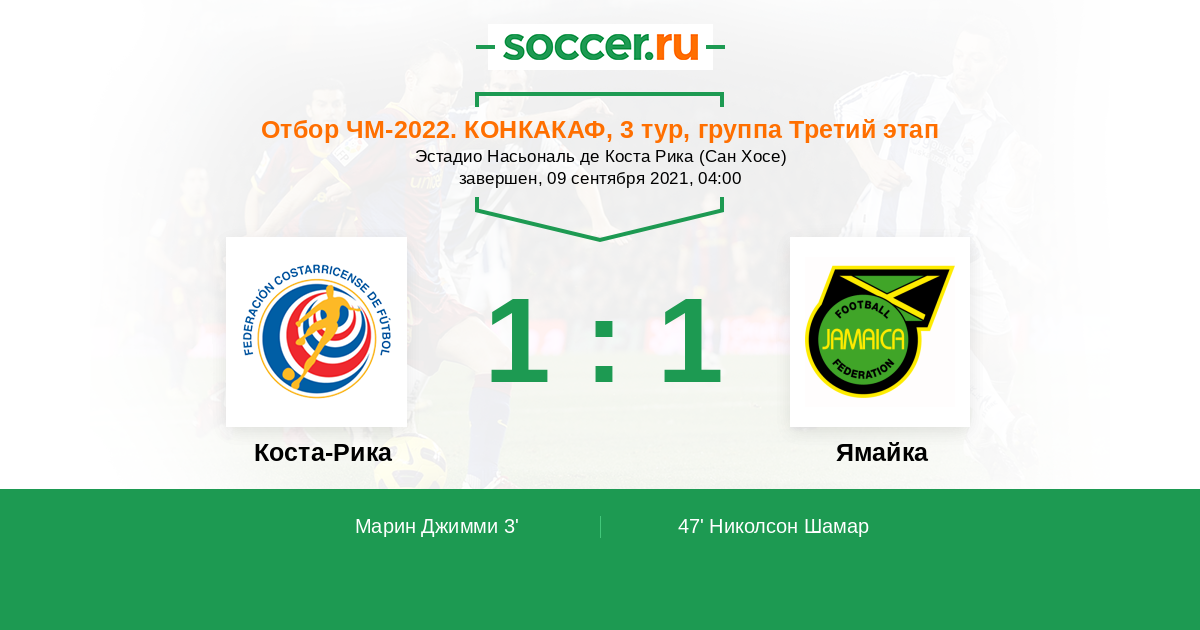 Протокол матча Коста-Рика против Ямайка