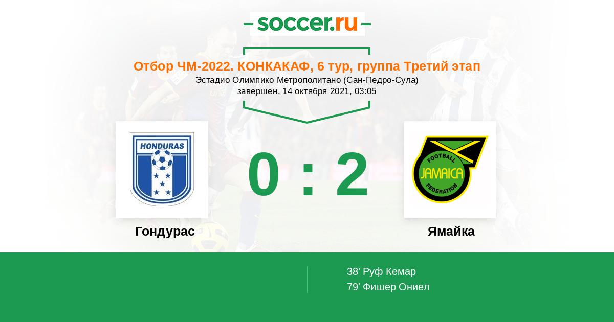 Протокол матча Гондурас против Ямайка