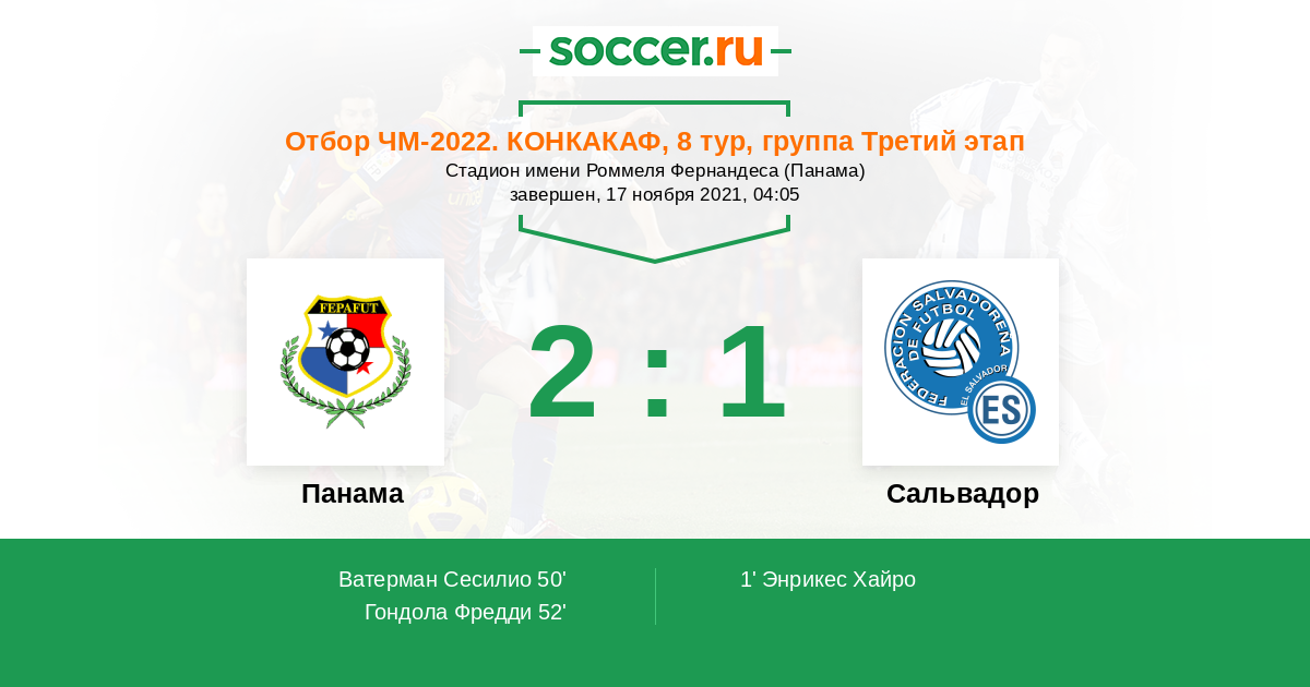 Протокол матча Панама против Сальвадор