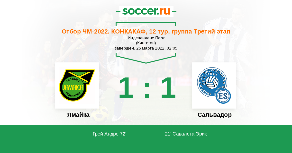 Небольшой перевес в этой паре я бы отдал сальвадорской сборной. Ямайка как победила на старте отбора Гондурас так больше ничего толкового и не показывала, а Сальвадор по ходу всей отборочной дистанции неплохими результатами похвастать может.