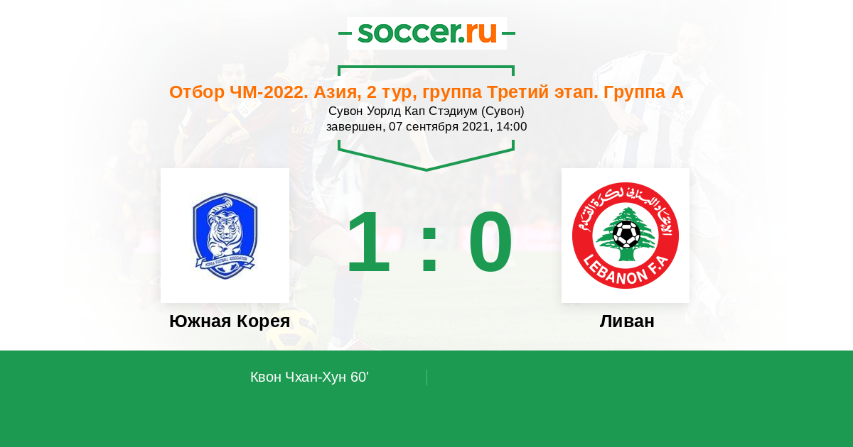 Протокол матча Южная Корея против Ливан