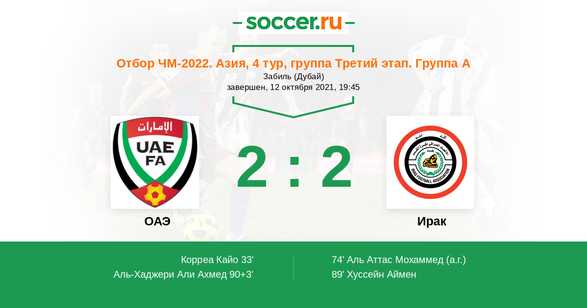 Гол90+3' (2:2) Аль-Хаджери Али Ахмед (7) (Валид Аббас (3))
