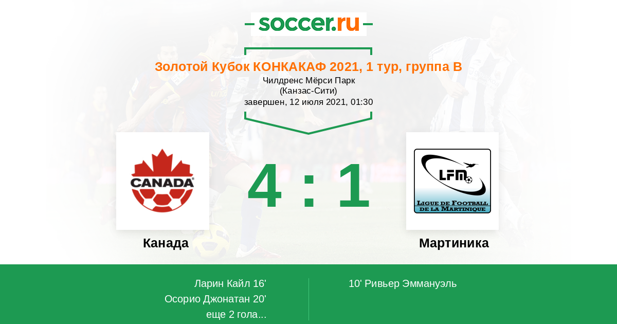 Протокол матча Канада против Мартиника
