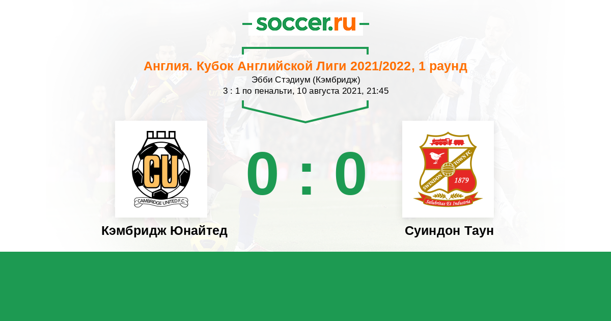 Протокол матча Кэмбридж Юнайтед против Суиндон Таун