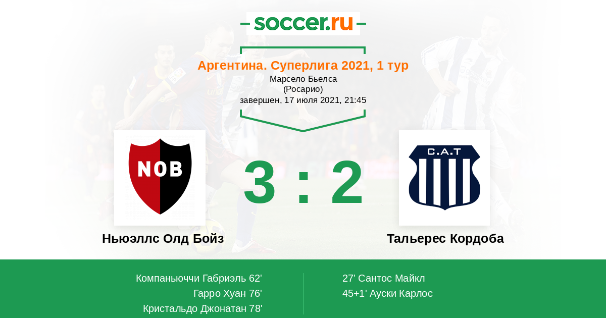 Протокол матча Ньюэллс Олд Бойз против Тальерес Кордоба