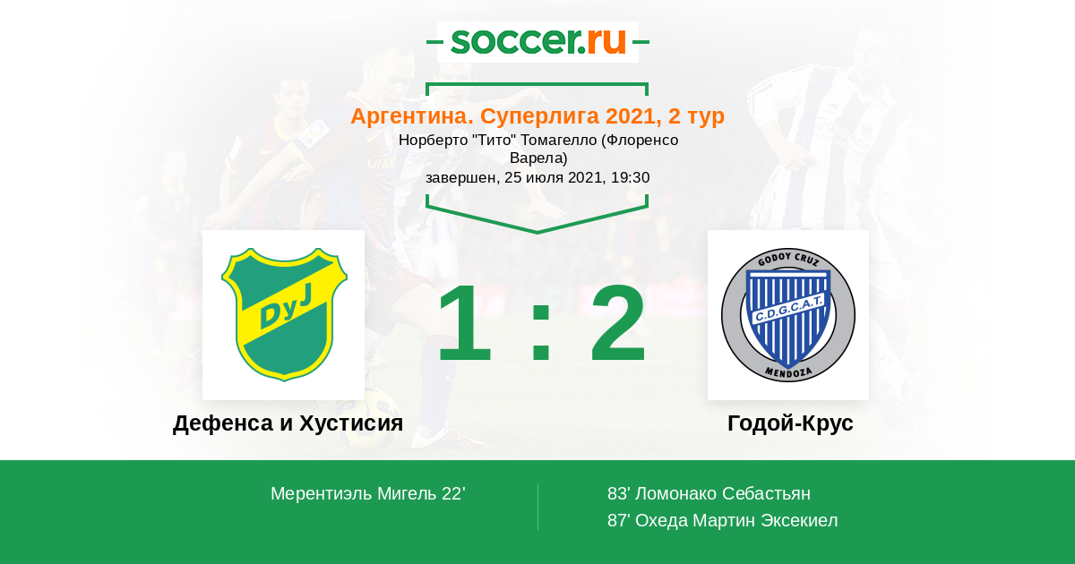 Протокол матча Дефенса и Хустисия против Годой-Крус