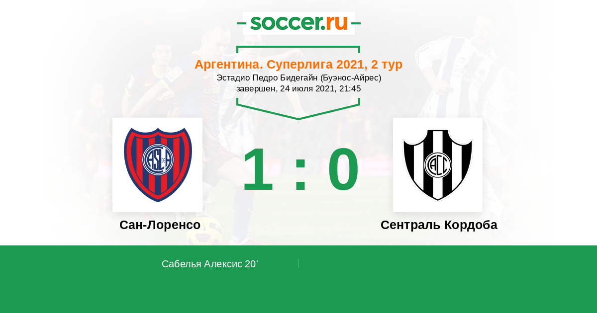 Протокол матча Сан-Лоренсо против Сентраль Кордоба