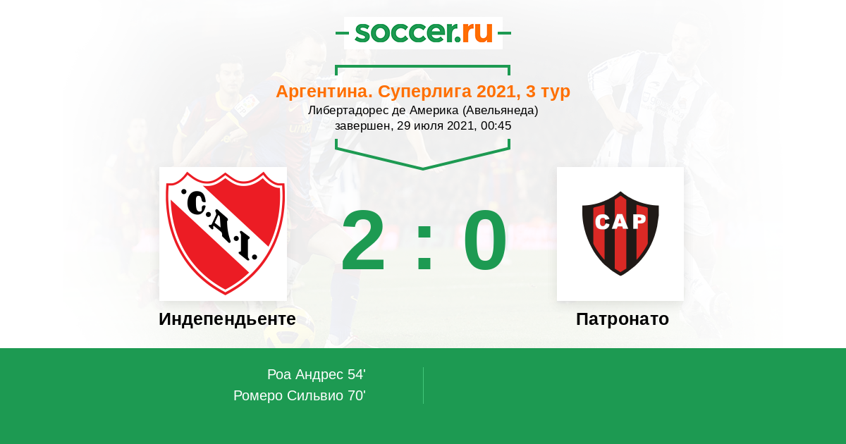 54' (1:0) Роа Андрес (7) (Паласиос Себастьян (34))