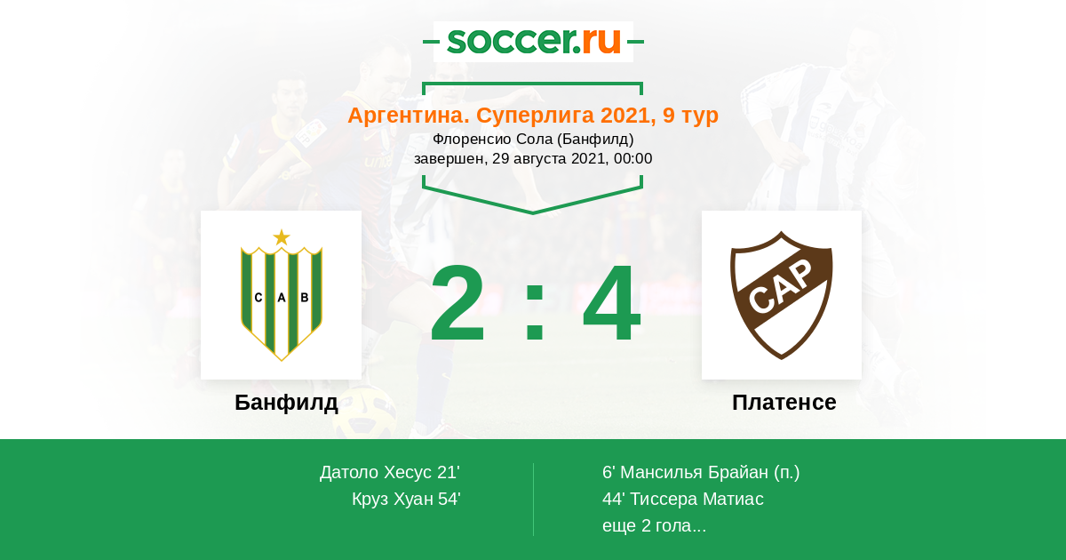 Протокол матча Банфилд против Платенсе