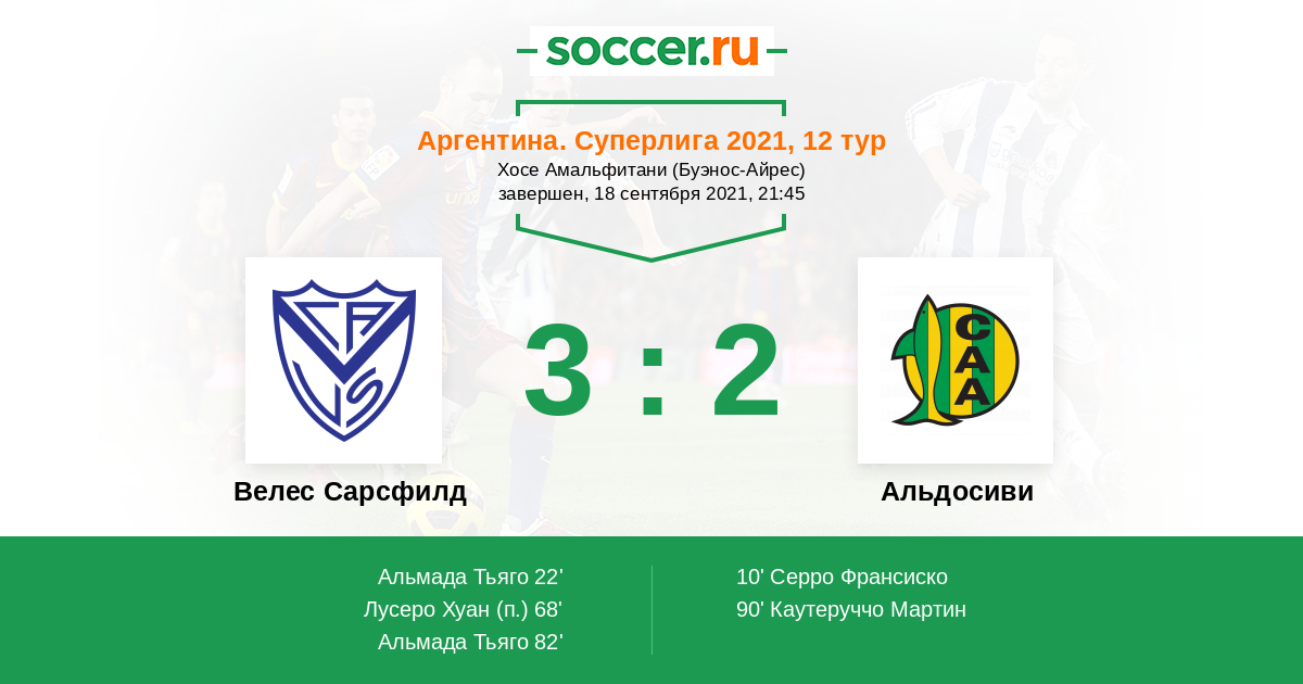 Протокол матча Велес Сарсфилд против Альдосиви
