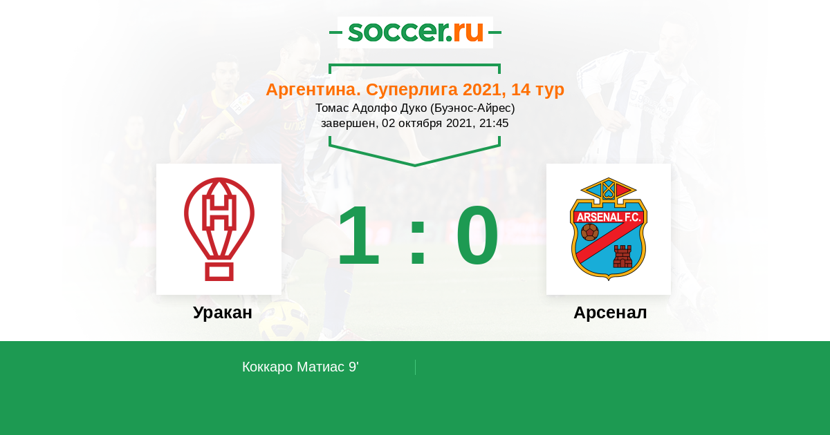 Протокол матча Уракан против Арсенал