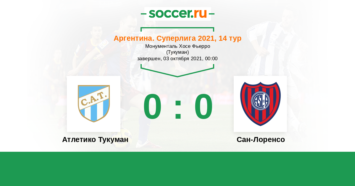Протокол матча Атлетико Тукуман против Сан-Лоренсо