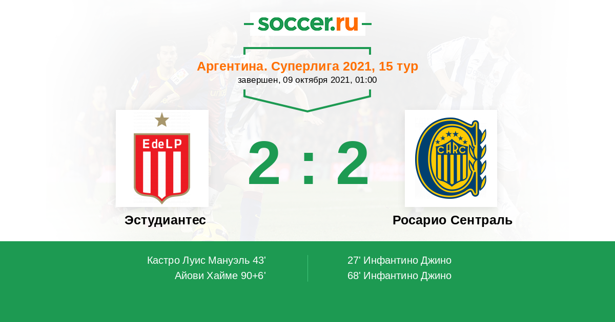 43' (1:1) Кастро Луис Мануэль (17) (Ногера Фабиан (18))