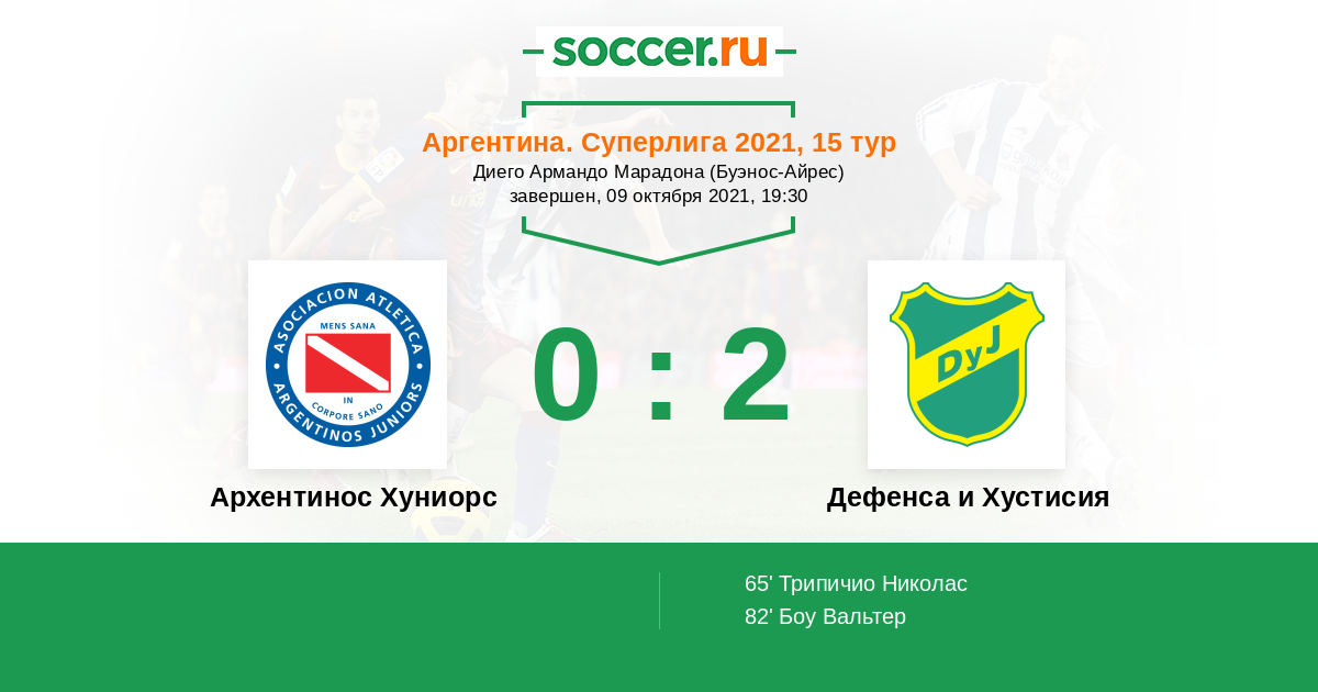 Протокол матча Архентинос Хуниорс против Дефенса и Хустисия