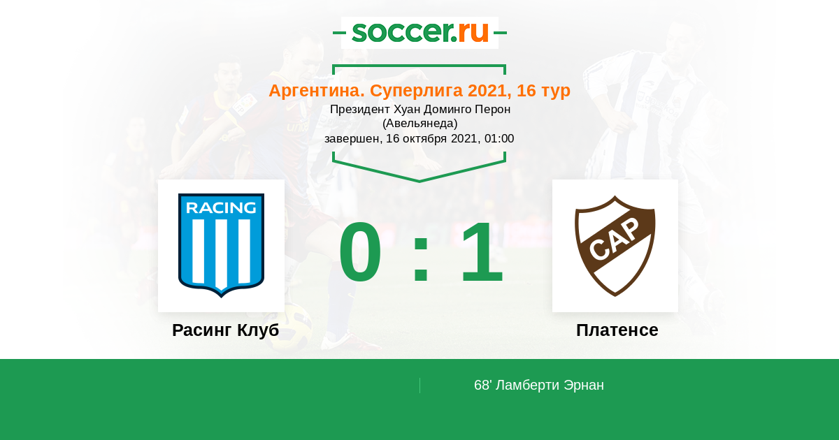 Протокол матча Расинг Клуб против Платенсе