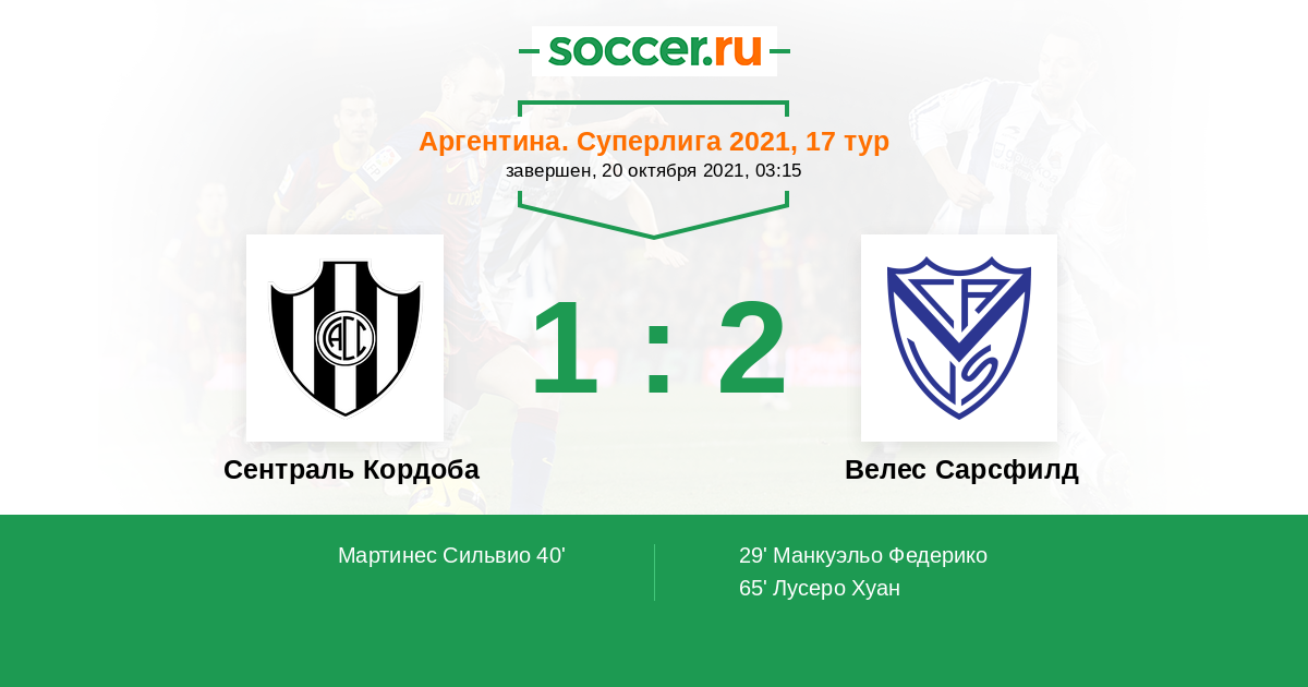 Протокол матча Сентраль Кордоба против Велес Сарсфилд