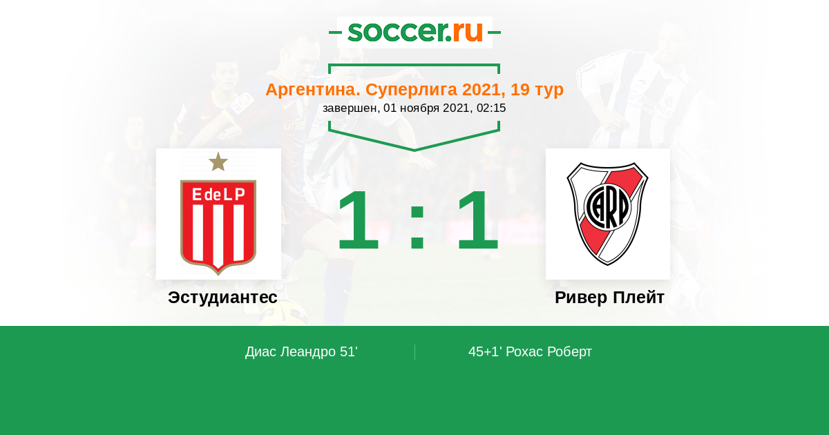 51' (1:1) Диас Леандро (9) (Дель Прете Густаво (10))