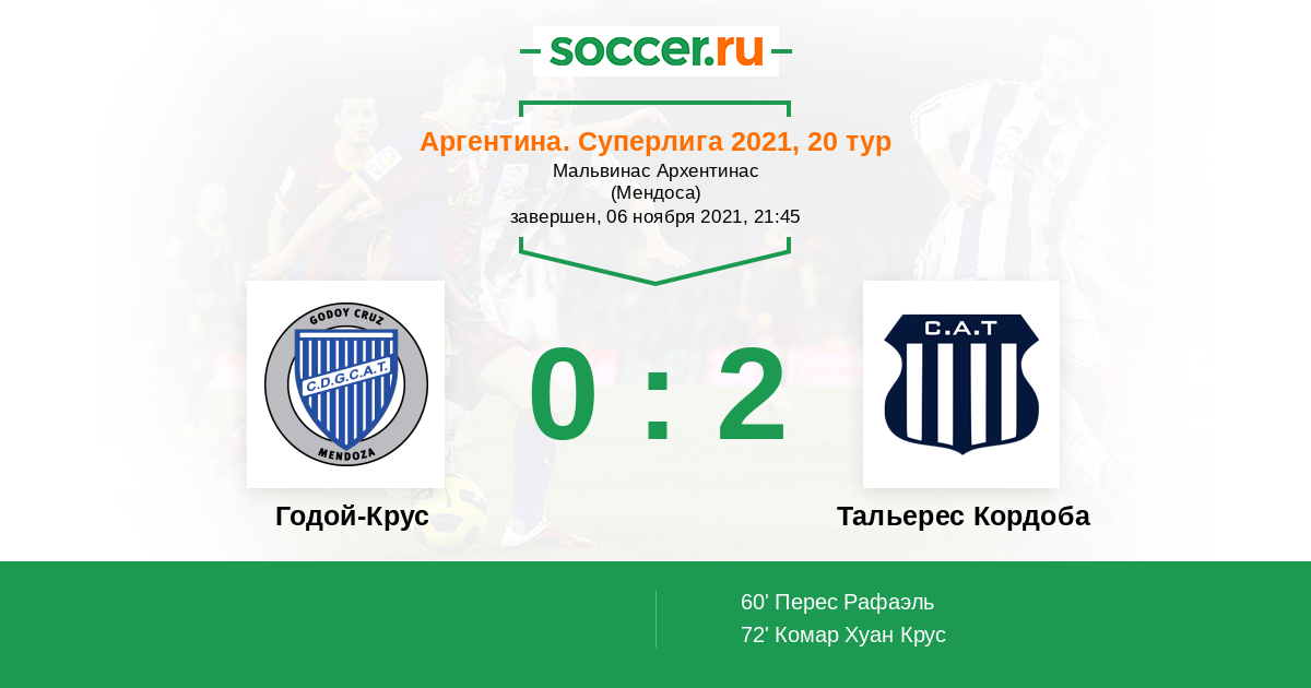 Протокол матча Годой-Крус против Тальерес Кордоба