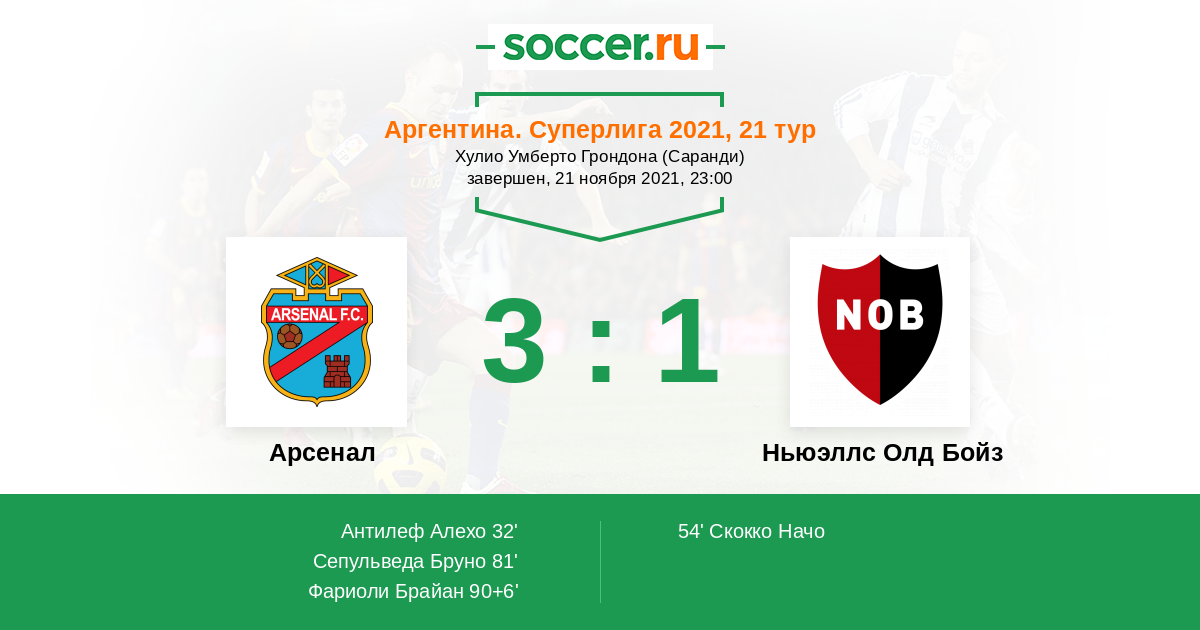 Протокол матча Арсенал против Ньюэллс Олд Бойз