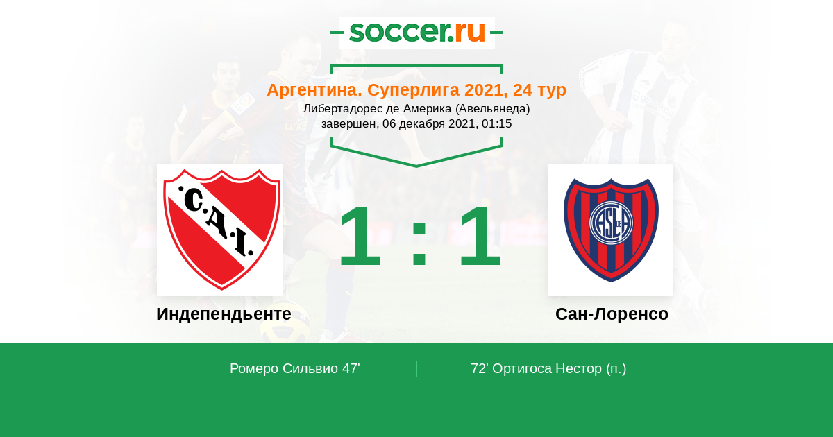 Протокол матча Индепендьенте против Сан-Лоренсо