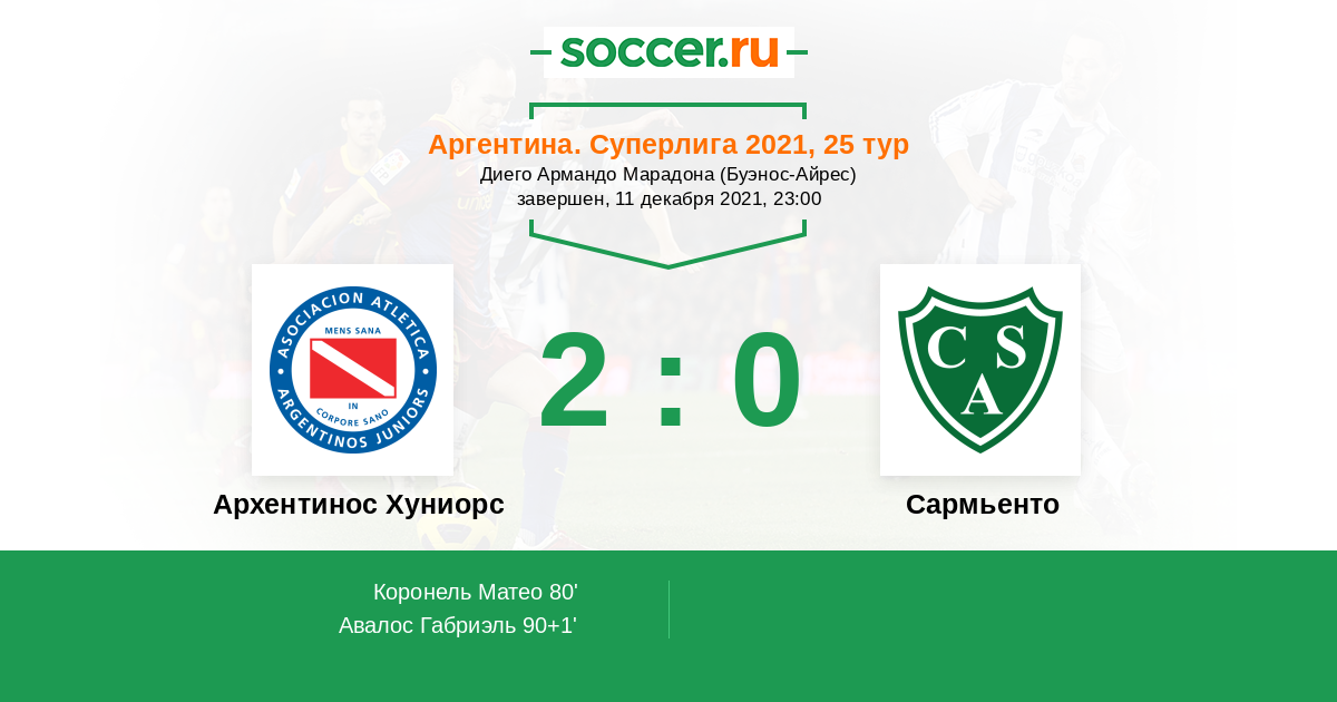 Протокол матча Архентинос Хуниорс против Сармьенто