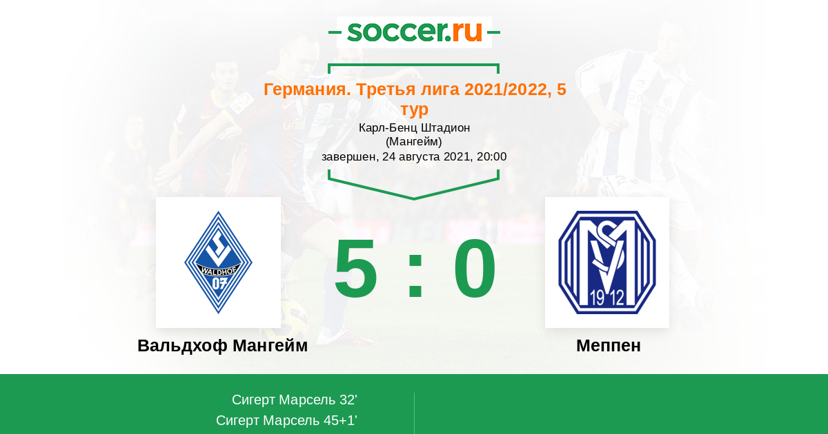 Протокол матча Вальдхоф Мангейм против Меппен