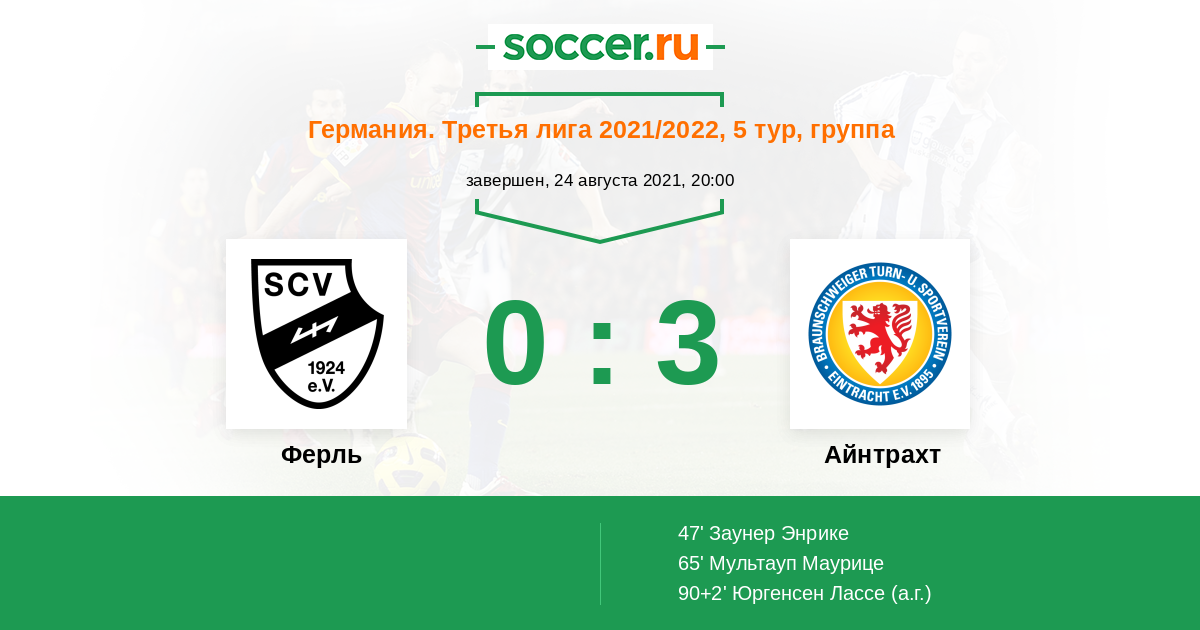 47' (0:1) Заунер Энрике (22) (Крауссе Робин (39))
