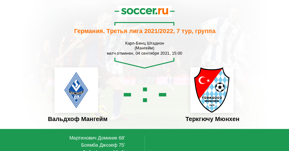 Расстановка матча Вальдхоф Мангейм против Теркгючу Мюнхен