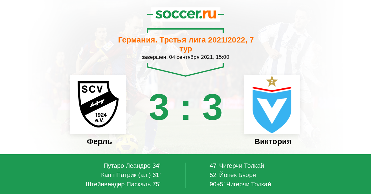 Протокол матча Ферль против Виктория
