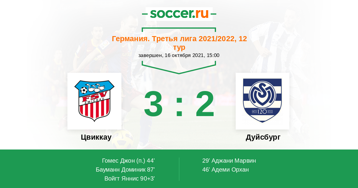 Протокол матча Цвиккау против Дуйсбург
