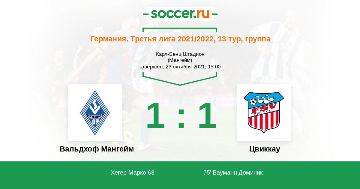 Протокол матча Вальдхоф Мангейм против Цвиккау