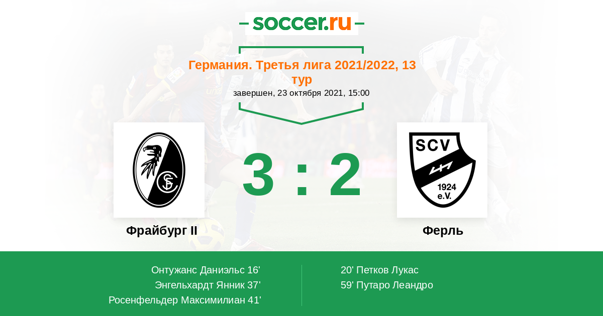 Протокол матча Фрайбург II против Ферль