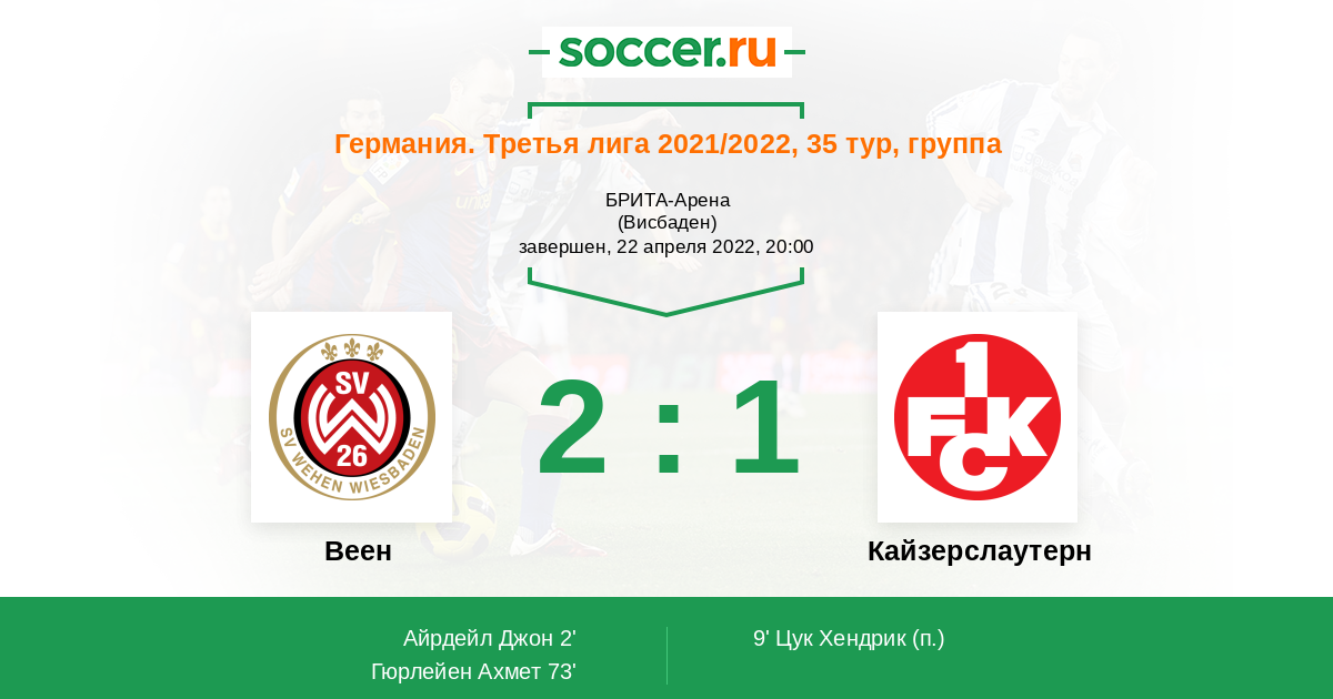 Протокол матча Веен против Кайзерслаутерн