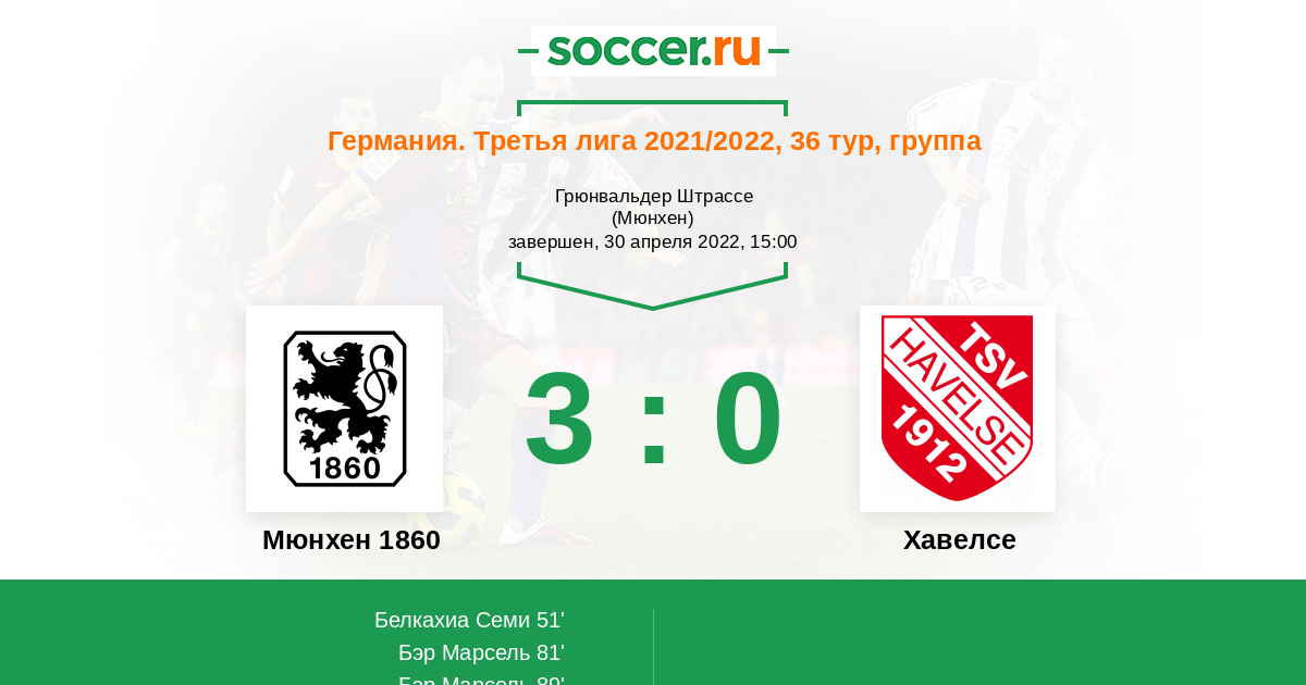 Протокол матча Мюнхен 1860 против Хавелсе