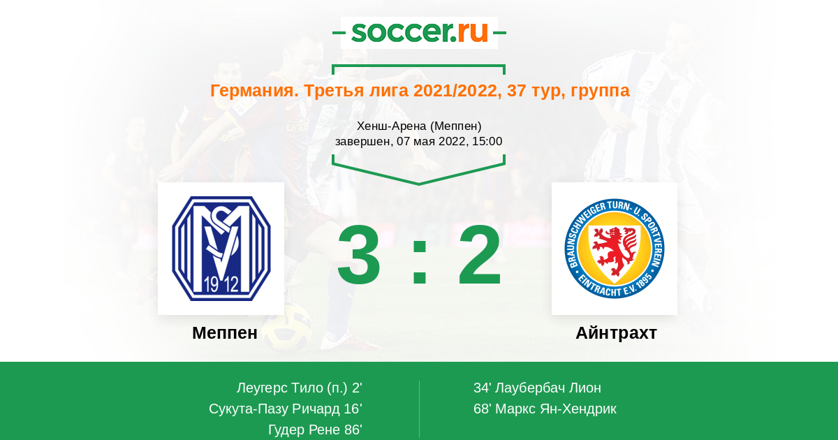 Протокол матча Меппен против Айнтрахт