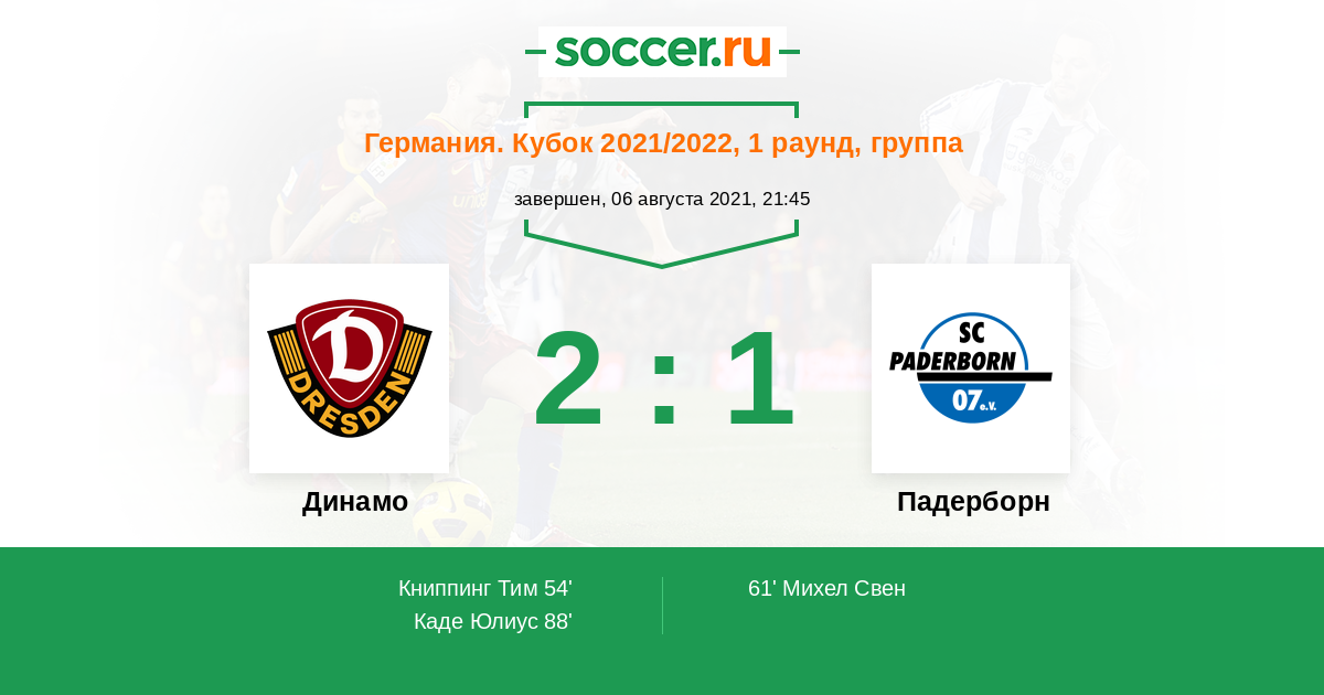 Протокол матча Динамо против Падерборн