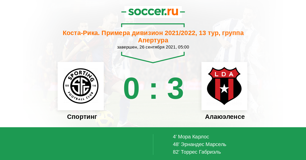 Протокол матча Спортинг Сан-Хосе против Алаюэленсе