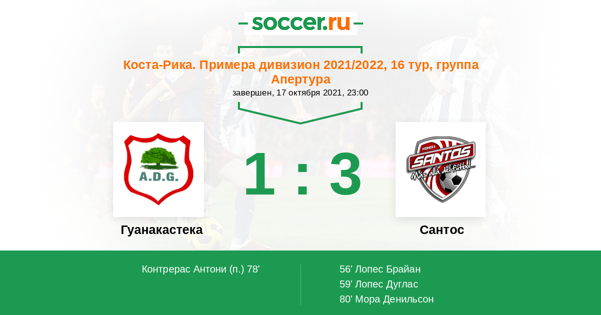 Протокол матча Гуанакастека против Сантос