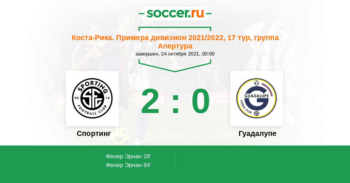 Протокол матча Спортинг Сан-Хосе против Гуадалупе