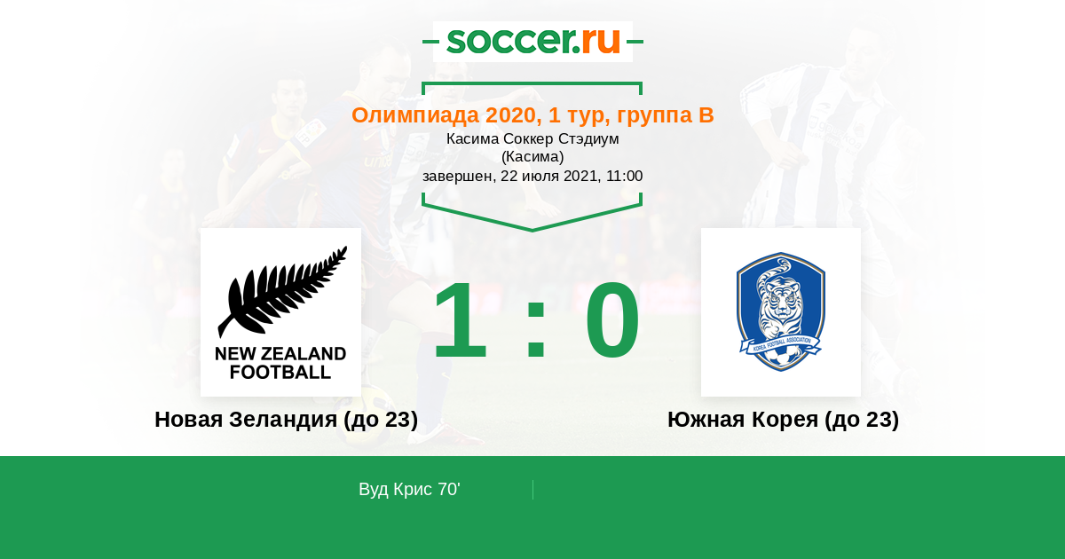Протокол матча Новая Зеландия (до 23) против Южная Корея (до 23)