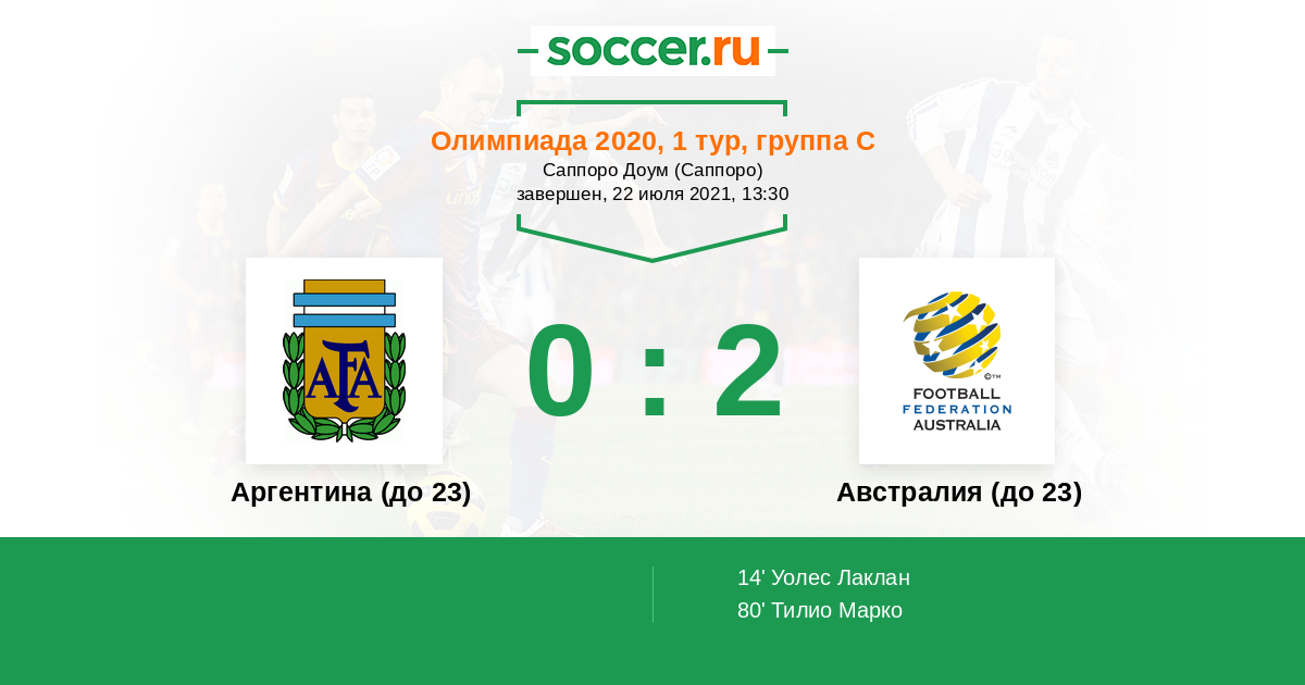 Протокол матча Аргентина (до 23) против Австралия (до 23)