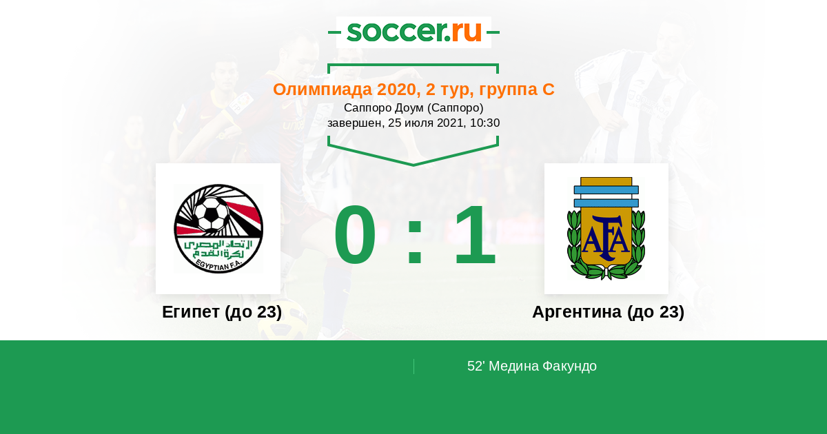 Протокол матча Египет (до 23) против Аргентина (до 23)