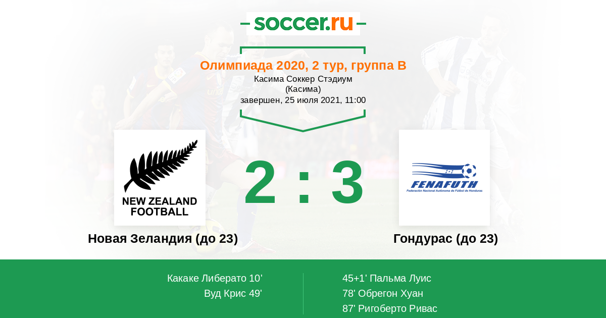 Протокол матча Новая Зеландия (до 23) против Гондурас (до 23)