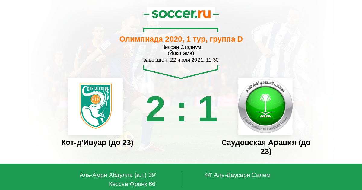 Протокол матча Кот-д'Ивуар (до 23) против Саудовская Аравия (до 23)