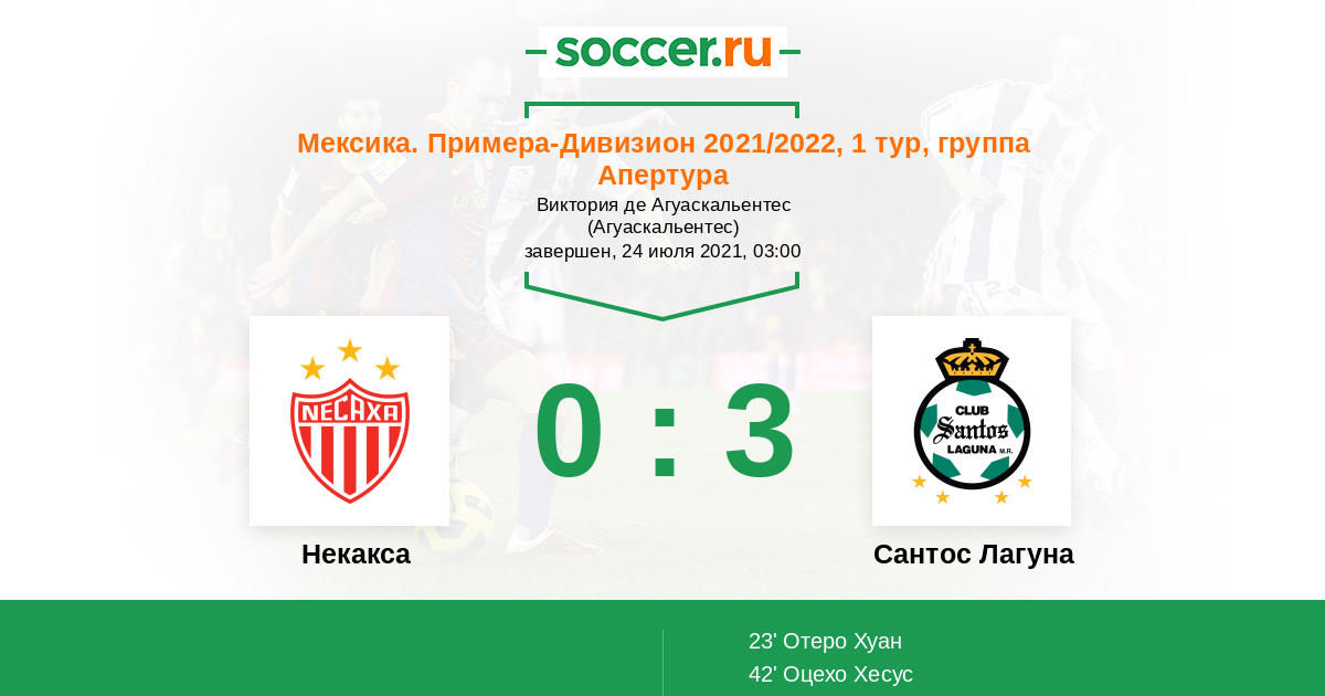 Протокол матча Некакса против Сантос Лагуна