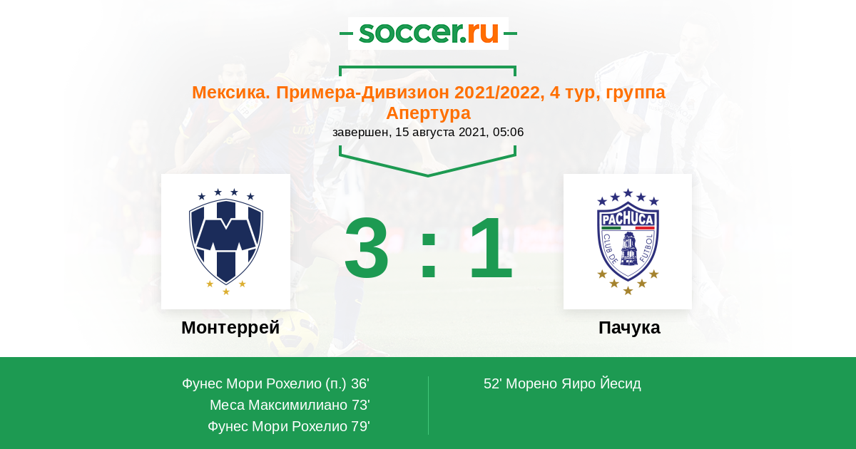 Протокол матча Монтеррей против Пачука