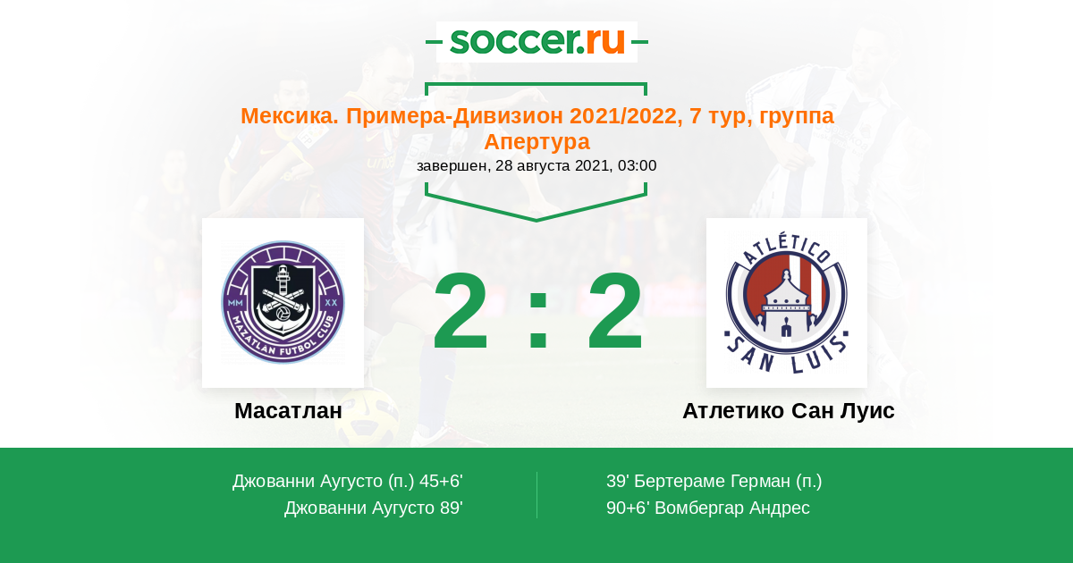 Протокол матча Масатлан против Атлетико Сан Луис