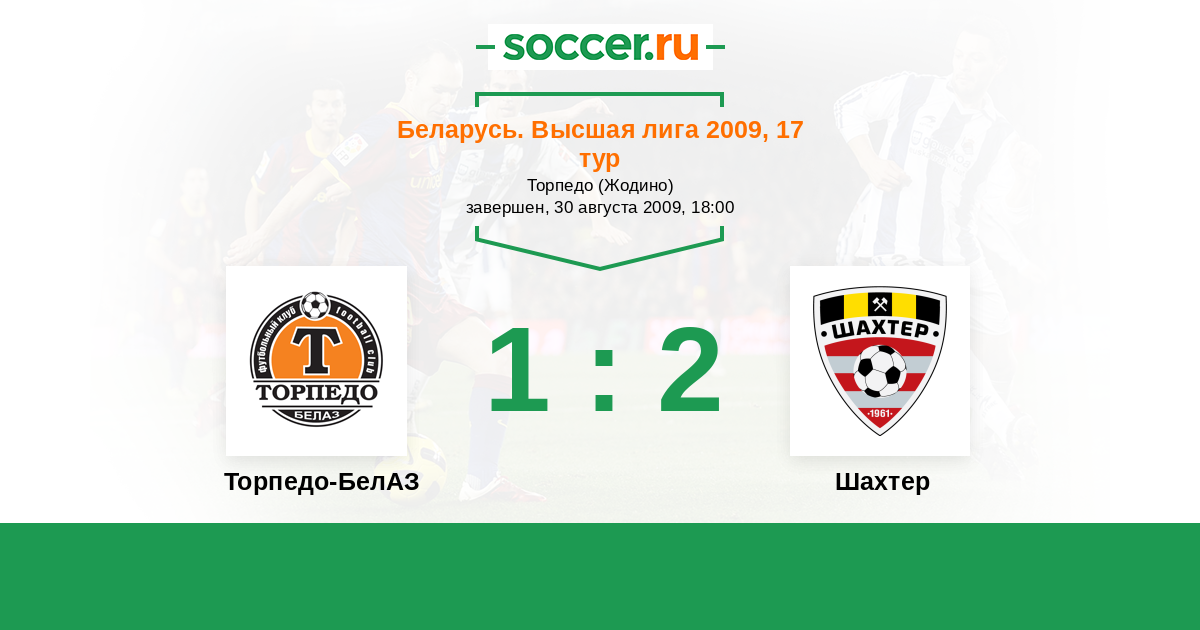 Беларусь. Высшая лига 26.04.2009 Шахтер Логотип футбольный клуб Шахтер (Солигорск) 0:1 Логотип футбольный клуб Торпедо-БелАЗ (Жодино) Торпедо-БелАЗ