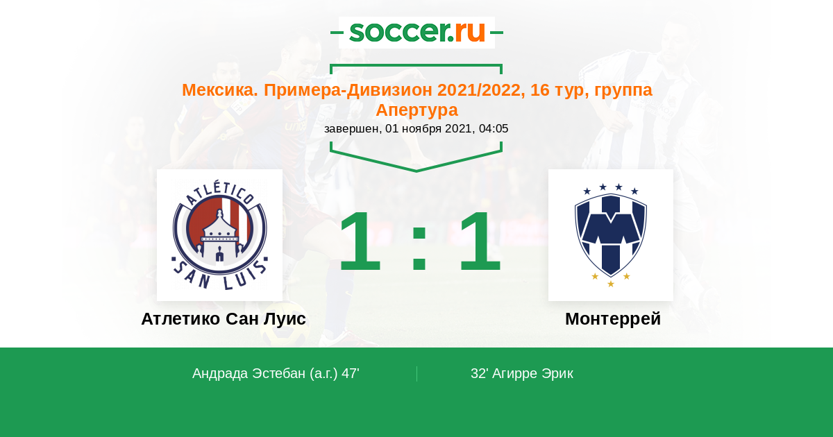 Протокол матча Атлетико Сан Луис против Монтеррей